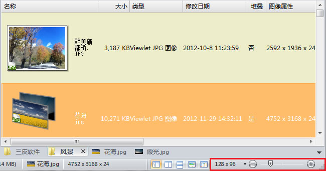 图标、列表、详细信息、平铺以及幻灯片模式外, Viewlet 还提供了自己特有的几种模式: 缩略图、缩略图 + 详细信息、缩略图 + 平铺.