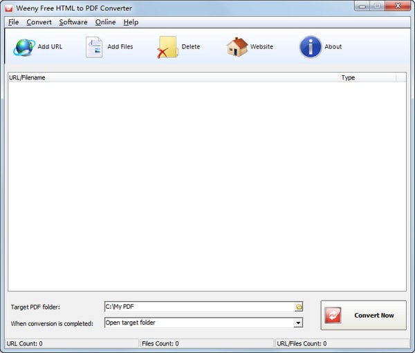 Weeny Free HTML to PDF Converter虽然有很多菜单,但所有功能都集中在界面中,你只需要点击“add
