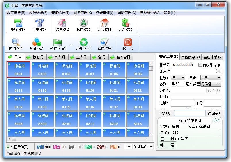1、按上一个问题的方法,选择需要离店的房间(子单),在[实收金额]栏输入实际结帐金额,然后按[收银结帐]按钮,系统会根据您选择的子单作离店结帐操作,不会影响其他子单。