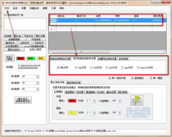 2.可以按照某种模板批量的把excel转成kml文件了,非常强大