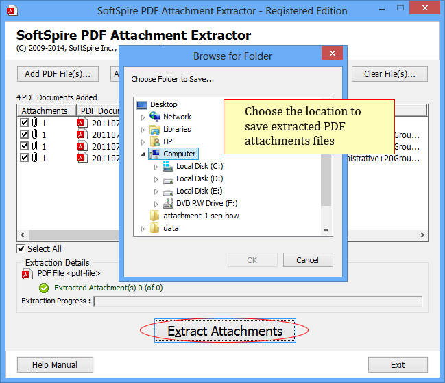 PDF附件提取器允许您批量从多个PDF文件中提取附件。它有多个PDF文件选择选项来提取附件。选项添加单个文件,用户还添加包含多个adobe