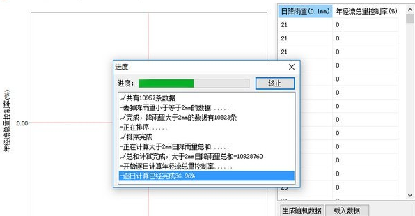 【生成随机数据】:这个按钮是用来测试的,点击后会询问最大的降雨量,随机数据会在大于等于0,小于最大的降雨量之间取值,随机产生30年的日降雨量数据。