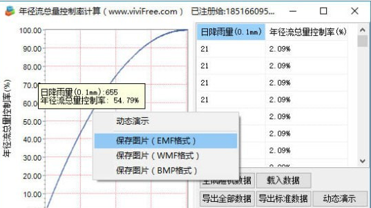 【导出标准数据】:以年控制率5%的间隔导出计算的结果,导出的文件是EXCEL格式的,文件数据举例如下: