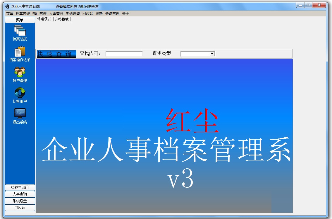 红尘企业人事档案管理系统是一款管理人事资料的软件,该软件界面简洁、功能强大、拥有独特的双模式浏览、操作非常的简单,帮助人事轻松管理员工资料,提高管理效率。