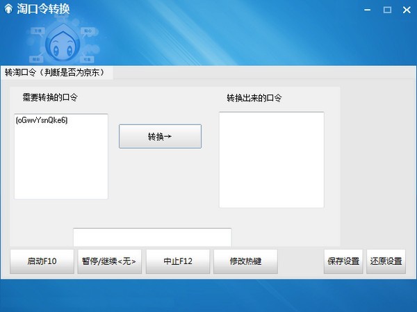 淘口令转换工具最新版是款功能专业且操作简单易学会的转换工具。淘口令转换工具最新版采用按键精灵开发的工具,可以不伤文案输出,这款软件无论是()还是¥¥还是符号的淘口令均可识别,也可以识别是否为京东链接,如果是,则输出说明以及空白符!