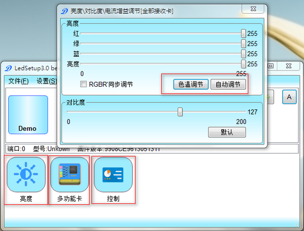 LED屏幕设置软件正式版是款高效实用且占据内存小的LED屏幕设置工具。LED屏幕设置软件正式版可以针对led屏幕进行各项设置操作,包括发送卡、屏体队列、伽马、亮度对比度电流增益、测试、固件管理,还可以用来LED测试、LED相关功能设置以及定时任务等等。