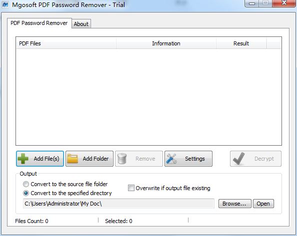 Mgosoft PDF Password Remover官方版是款安全性很高的pdf密码移除工具。Mgosoft PDF Password
