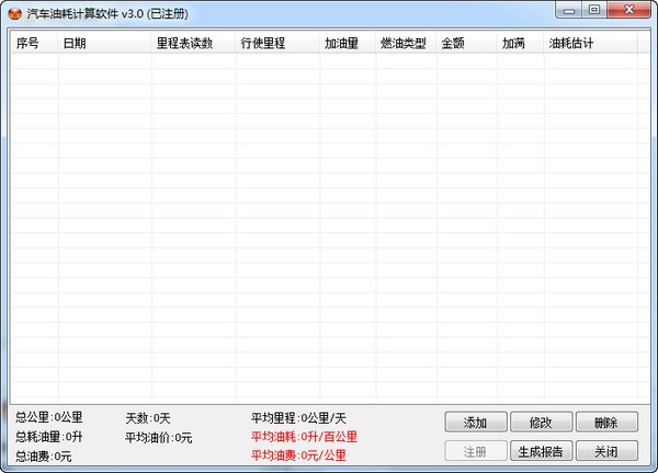 汽车油耗计算软件能够记录每次行驶里程表计数,所加的燃油类型,单位及金额,最终生成油耗计算报告,得出平均里程X公里/天,平均油耗X升/百公里,平均油费X元/公里。