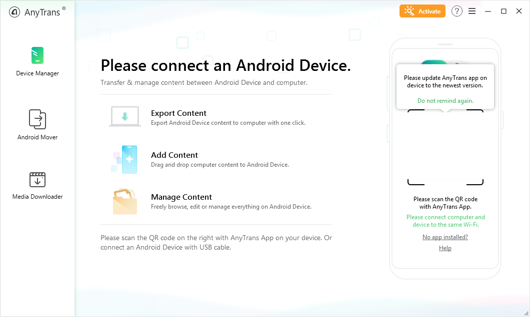 使用AnyTrans,您可以将几乎所有Android数据自由传输到iPhone,iTunes,甚至是iCloud,例如通讯录,信息,照片,音乐,甚至壁纸,亮度等设置和更多。更好的是,您可以选择部分数据甚至单个项目进行传输。