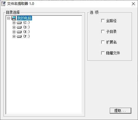 文件名提取器正式版是款提高工作效率,操作简单便捷的文件夹以及文件名名称查找提取工具。文件名提取器正式版可以帮助用户查找和读取电脑中的文件名称并支持定义分隔符显示查询,批量文件名称获取。也可以快速帮助用户查找自己要查询的文件名称且软件操作简单查找速度非常快。