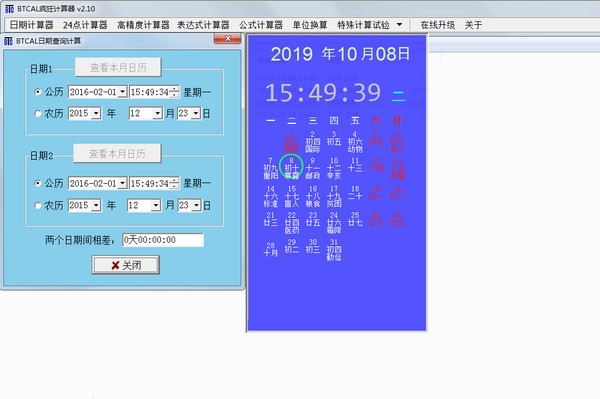 (2)内盖的白计算器,可以查询1900~2049年间公历、农历、节气、节白、数九、三优、梅、出梅等信息,可以实现公历、农历间的相