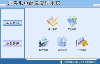 消毒毛巾配送管理系统官方版是一款简单易用的毛巾配送管理软件消毒毛巾配送管理系统官方版集配送、收回、统计与一体。软件界面设计简洁、美观其人性化的管理可以使用户轻易上手,大大节省工作时间,提高工作效率。