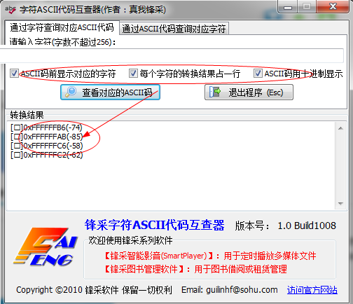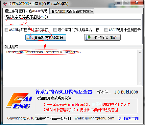 1、输入需要查询的字符,点击查询,可以得到字符的ASCII代码;