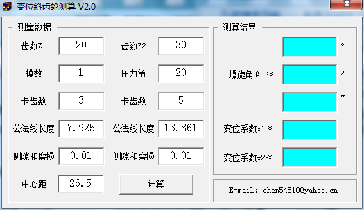 变位斜齿轮测算工具绿色版可以选择齿数,一个齿轮有很多齿数,您自己选择