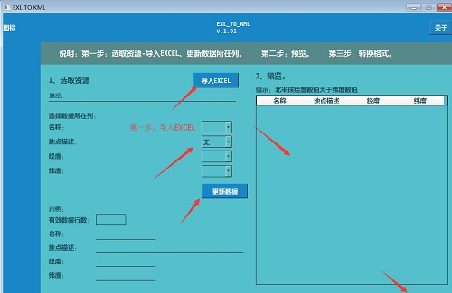 EXL TO KML官方版是一款实用的文件转换软件,将Excel的xls文件转换为KML及GPX文件,而本软件所提供的方法可以十分简单的就实现转换功能,造福广大野外工作者。