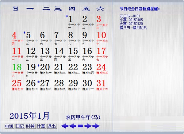方医生日历电话簿官方版是款界面清晰易懂的管理软件,方医生日历电话簿官方版点击相应的时间号码,有提醒和纪事编辑窗口,您可以输入您需要提醒的事项;例如:朋友的生日、结婚纪念日等等,凡是您认为怕忘记的事情都可以存储记忆。把您经常使用的电话号码存入其中。便于查找、更新、修改和打印,为了您的信息安全,我们设置了密码,使用时请一定保管好您的密码。查号及号码输入时有声音提示。