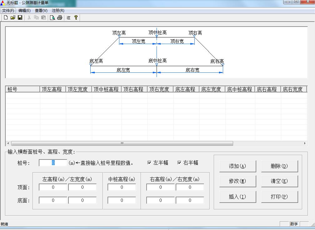 《公路路基计量单》软件适用于公路路基施工的计量,计算各桩号路基横断面面积,路基体积。打印路基工程量计算表(有简图和计算过程),可以直接与计量申请书装订在一起,形成计量文件。该软件操作简单,计算速度快,计算准确,打印的计量表整齐美观,可以提高计量工作效率和质量。