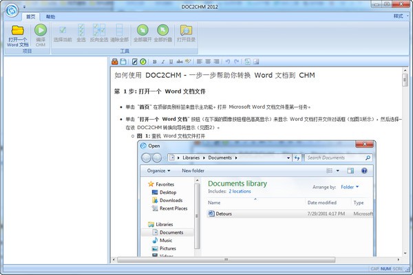 DOC2CHM支持Microsoft Word 2000或更高。微软Word 2007 .docx 文件也支持。