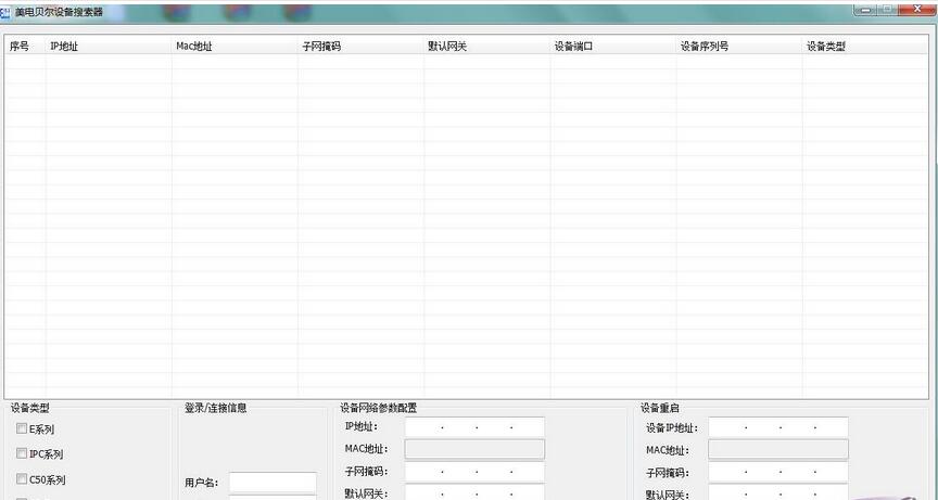 美电贝尔设备搜索器官方版是一款功能十分强劲实用的设备管理软件,美电贝尔设备搜索器拥有丰富的功能,为用户提供搜索美电贝尔设备、设置网络参数和重启美电贝尔设备三大功能,支持美电贝尔E系列、IPC系列、C50系列、S系列和CH20系列网络摄像设备。