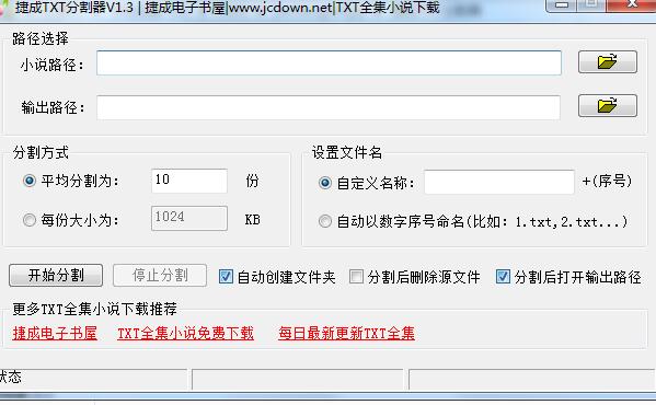 捷成TXT分割器最新版是一款页面简洁大方,操作简单的标准偏差计算器软件,提供等份分割、字节分割和字串分割三种分割方式,采用多线程分割技术,可分割大型的TXT文件,分割后的文件无乱码,满足用户的需要。