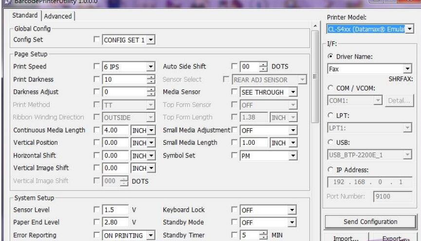 2、配置文件也可以通过Citizen打印机驱动程序来进行发送。