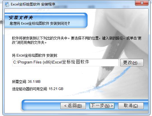 4、选择安装文件夹,默认的是C:Program Files (x86)Excel坐标绘图软件,可以点更改选择新的路径