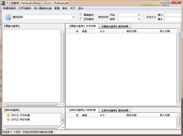 个人档案馆 Personal Library (PLibrary)包含下述两个档案库:【硬盘光盘库】是多种来源的硬盘、U