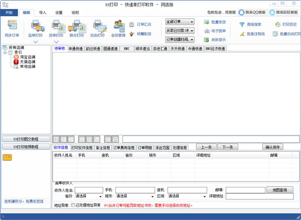 6.支持快递模板下载导入功能。程序大地放宽了单据的打印种类。
