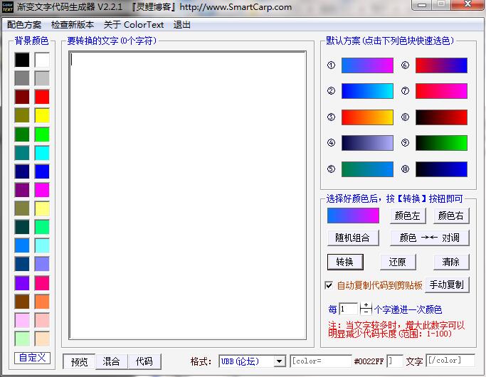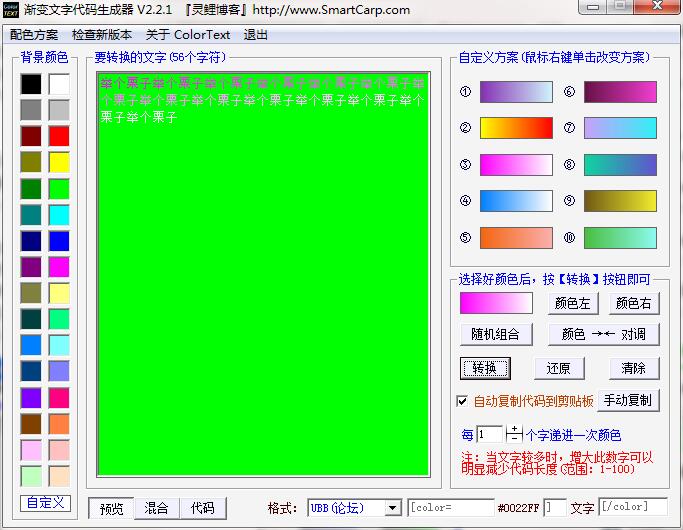 1、可以生成论坛(BBS)、QQ空间、网页(html)、自定义格式的渐变代码。