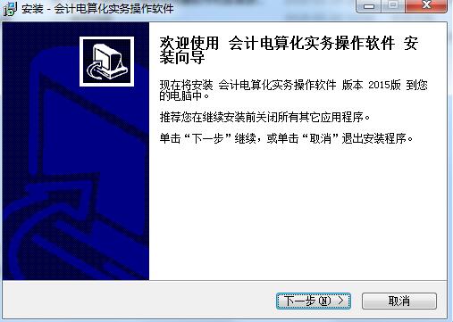 1、双击会计电算化实务操作软件.exe文件,进入欢迎界面,点击下一步