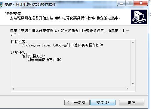 4、确认会计电算化实务操作软件安装信息,点击安装