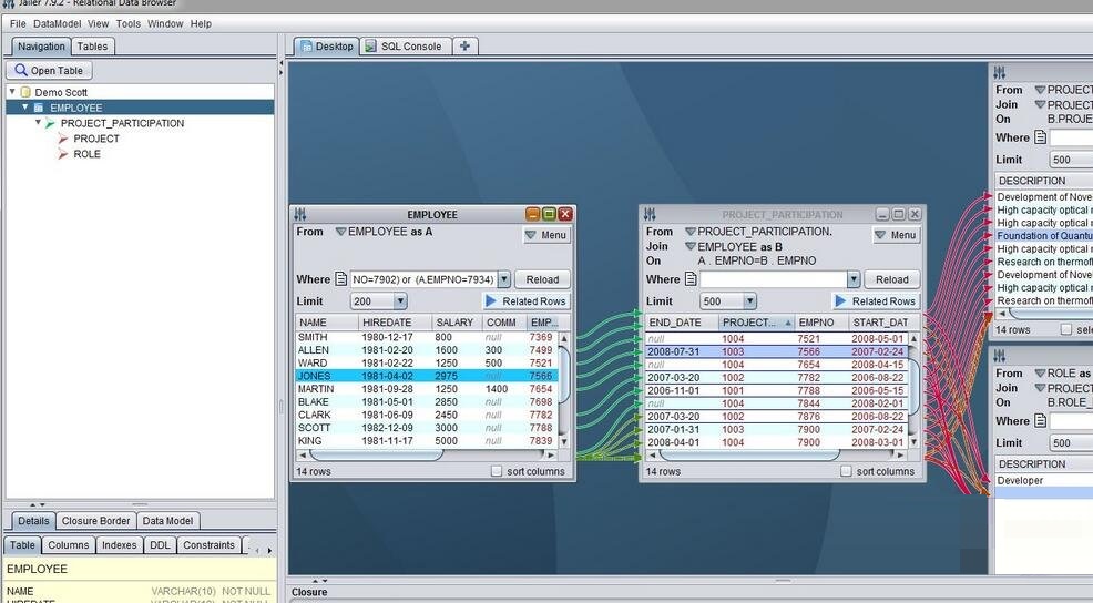 3、通过遵循基于外键或用户定义的关系在数据库中导航