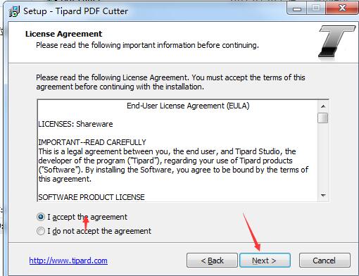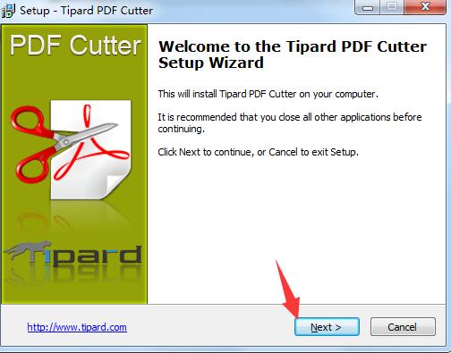 在本站下载软件包,解压,运行“pdf-cutter.exe",单击next