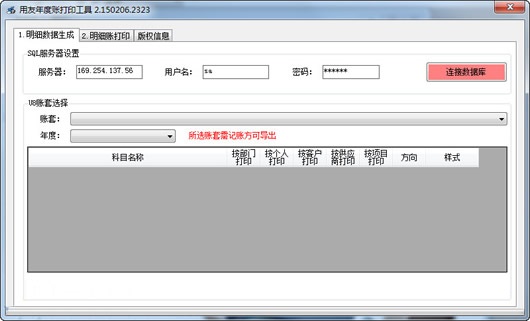 用友年度账打印工具基于用友U8软件设计,免去以往年度账打印的繁琐程序和设置,一次性将数据导出,同时设置打印格式,打印方向,账簿样式等个性化参数,一次性打印。同时可以生成目录页码,方便、快捷、美观,是提高工作效率选择。