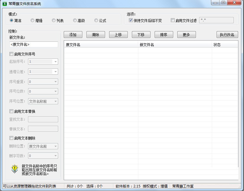 常青藤文件改名系统官方版采用可视化界面设计,在文件列表中动态显示新文件名称,以供用户确认,并提供最佳的系统参数缺省值。