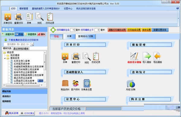 药品医疗器械送货单打印软件官方版是一款十分专业的医疗器械送货单打印工具,药品医疗器械送货单打印软件官方版提供的打印方式包括单打和套打,支持连续打印纸,可自动生成流水单号。除此之外软件还带有统计功能,包括金额合计以及客户的账单合计,并可将其导出为表格格式文件。