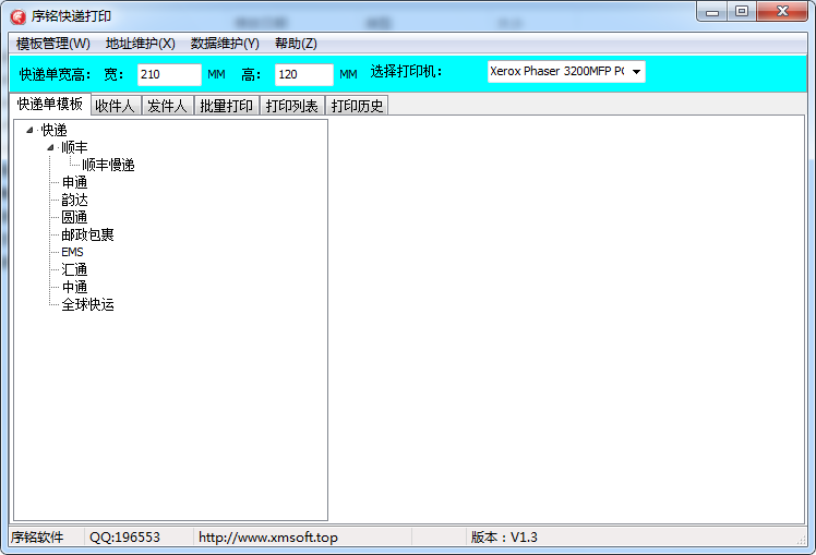序铭快递单打印软件绿色版是一款功能强劲、操作简单的快递单打印软件,序铭快递单打印软件绿色版中没有找到你需要打印的快递单打印模板,那么用户可通过自己的需求自定义制作打印模板,系统初始默认支持EMS国内单、