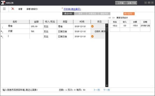 3、可以直接在界面添加账目