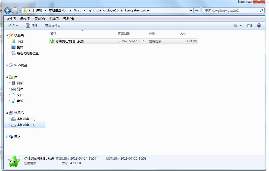 在本站下载软件包,解压,运行“绿精灵证书打印系统.exe"