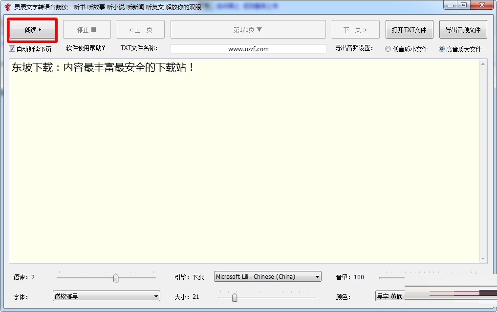 【听网页新闻】推荐使用 第1种 文字朗读方式,方便快捷。