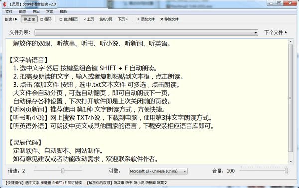 灵辰文字转语音朗读最新版是款十分受欢迎的文字语音朗读软件,灵辰文字转语音朗读最新版主要帮助用户将文字内容以语音的形式朗读出来,并且支持对朗读速度以及朗读参数进行调节,无论您是听书还是听新闻、灵辰文字转语音朗读都可以为您实现文字转语音的操作服务!