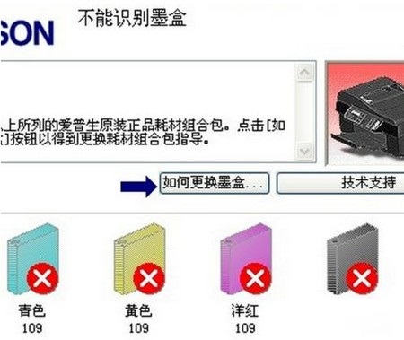 除了采用T109四色分体墨盒,其四色墨水均为DURABrite