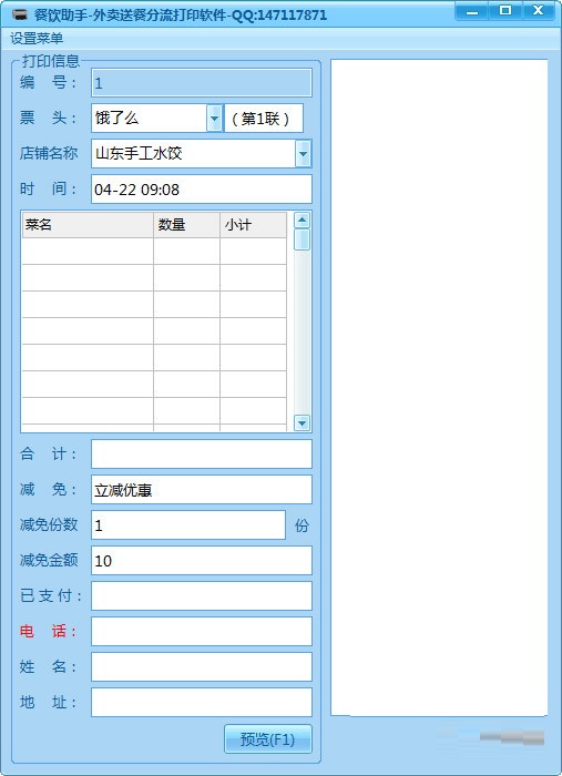 1、本软件允许自己编辑打印票头如:饿了么 美团等等任意票头。