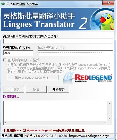 第二步:运行“灵格斯批量翻译”程序进行单词列表文本文件的解释翻译