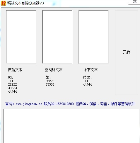 精站文本剔除分离器绿色版是一款十分实用的文本剔除分离工具,精站文本剔除分离器绿色版可以将文本中不想要的文字去掉工具,从多组数据中轻松剔除不需要的数据,例如你有一批QQ号要加好友,但其中有些QQ不想加,想分离出来,那么就可以用这个软件。