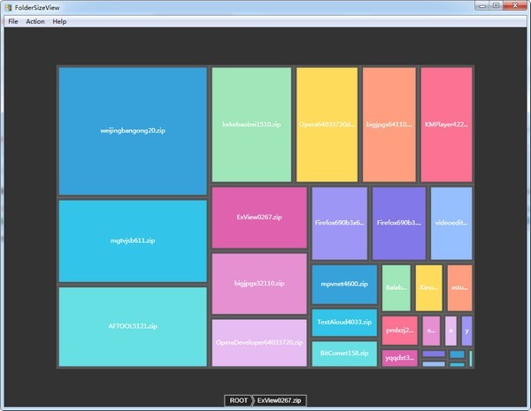 Folder Size View最新版是一款非常优秀的文件夹可视化管理软件,Folder Size View最新版可以通过方格展示文件夹内容大小,俗称矩形树布局(TreeMap),一目了然,展示文件夹内容大小,还会通过不同颜色区分不同类型的文件。