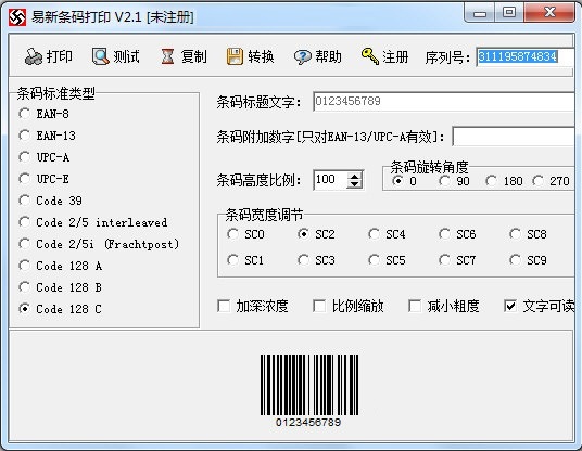易新条形码打印官方版是一款非常优秀的国际标准条形码设计、生成和打印工具,易新条形码打印官方版内置丰富的功能,直观的操作界面,支持多种国际标准条形码设计、打印,且操作十分简单,只需要输入基本的参数就可以自动生成条形码!