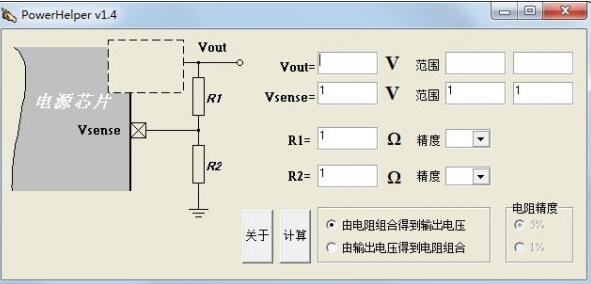 4、如果需要计算电阻就勾选第二个功能“由输出电压得到电阻组合”然后在软件顶部输入电压