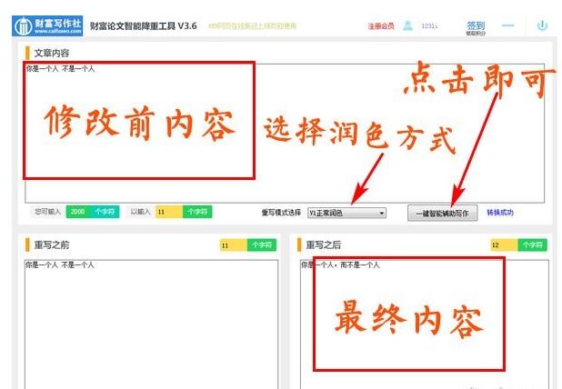 使用方便:论文智能降重工具使用方便,一键修改,无需复杂操作,立即下载,绿色版支持免费试用。这是大学生修改论文重复率的神器!