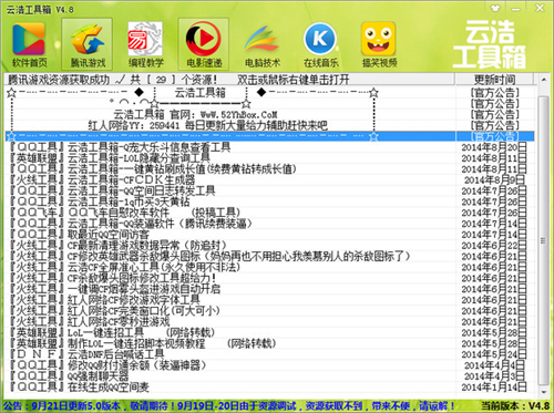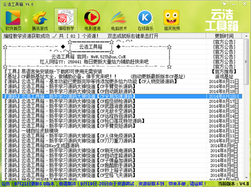 云浩工具箱官方最新版是一款操作简单方便、功能强大的多功能工具箱软件,云浩工具箱官方最新版拥有全新Exui界面引擎,更新给力工具资源,并且还加入易语言编程软件(源码,模块,教程,工具)等可免费学习,采用多线程处理更新,每个资源互不干扰,喜欢就来试试吧!